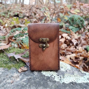 Antique Black Premium Leather Tarot Card Case. Handmade premium leather tarot deck box in distressed Black & hand sewn with Red thread.