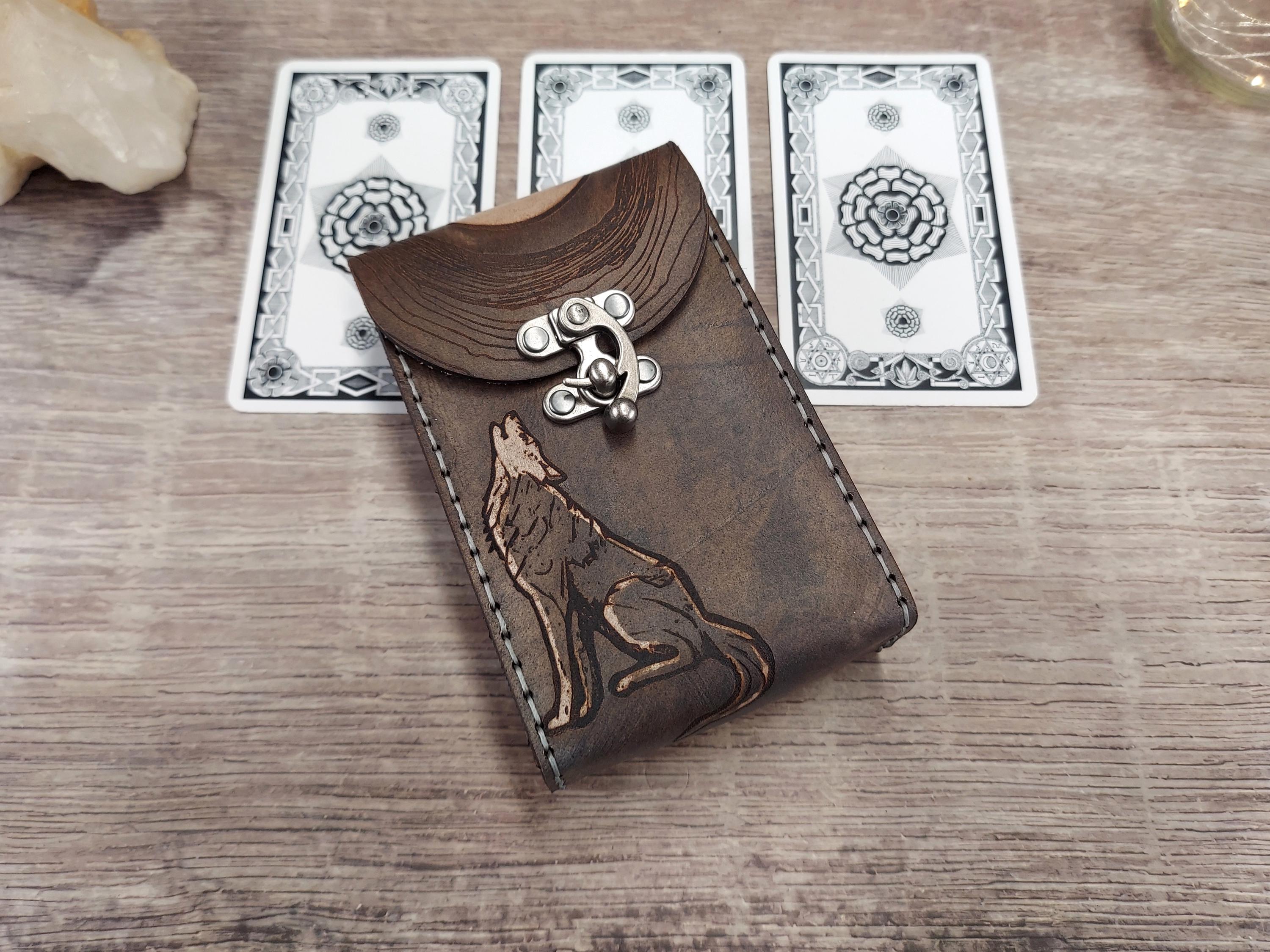 Most tarot card cases are sized to house a standard sized tarot deck or smaller. The standard cases will house this size deck or smaller: