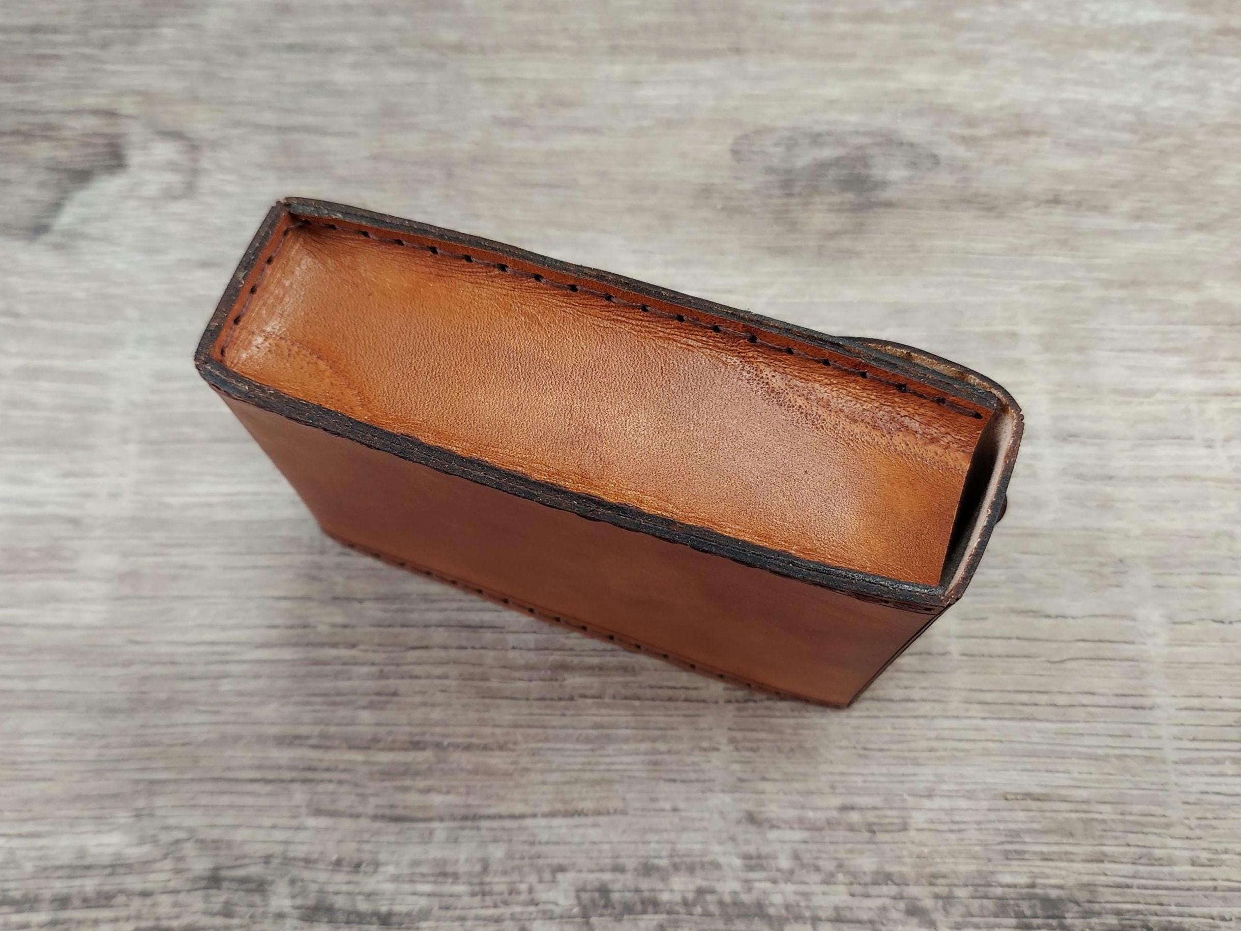 Vegetable-tanned leather has some rigidity to it, which helps the product to retain its shape and integrity. Vegetable-tanned leather will soften and develop a rich patina over time, meaning your item will develop a unique and appealing appearance as it ages, only getting better with time.